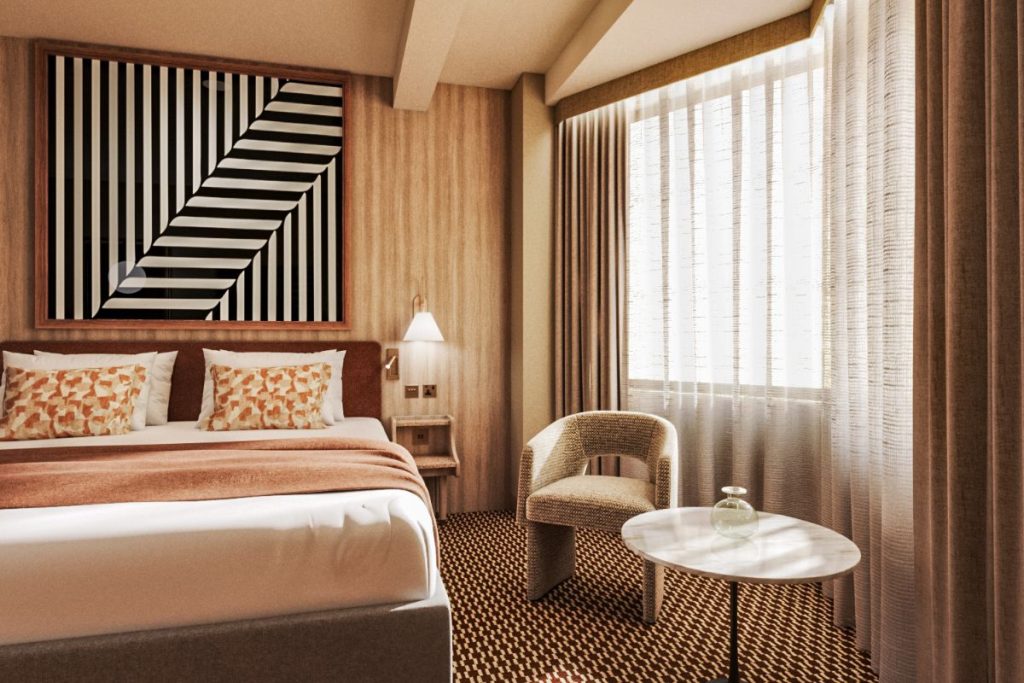 The hotel will offer understated luxury across 357 rooms and suites that pay homage to its history, blending mid-century modern inspired interiors with considered touches designed elevate the experience of today’s traveller. Public spaces will invite guests, Londoners, and locals to come as they are with energetic programming designed to inspire interaction and fuel connections, whilst the tenth-floor rooftop bar will offer uninterrupted views of Russell Square and the capital beyond.